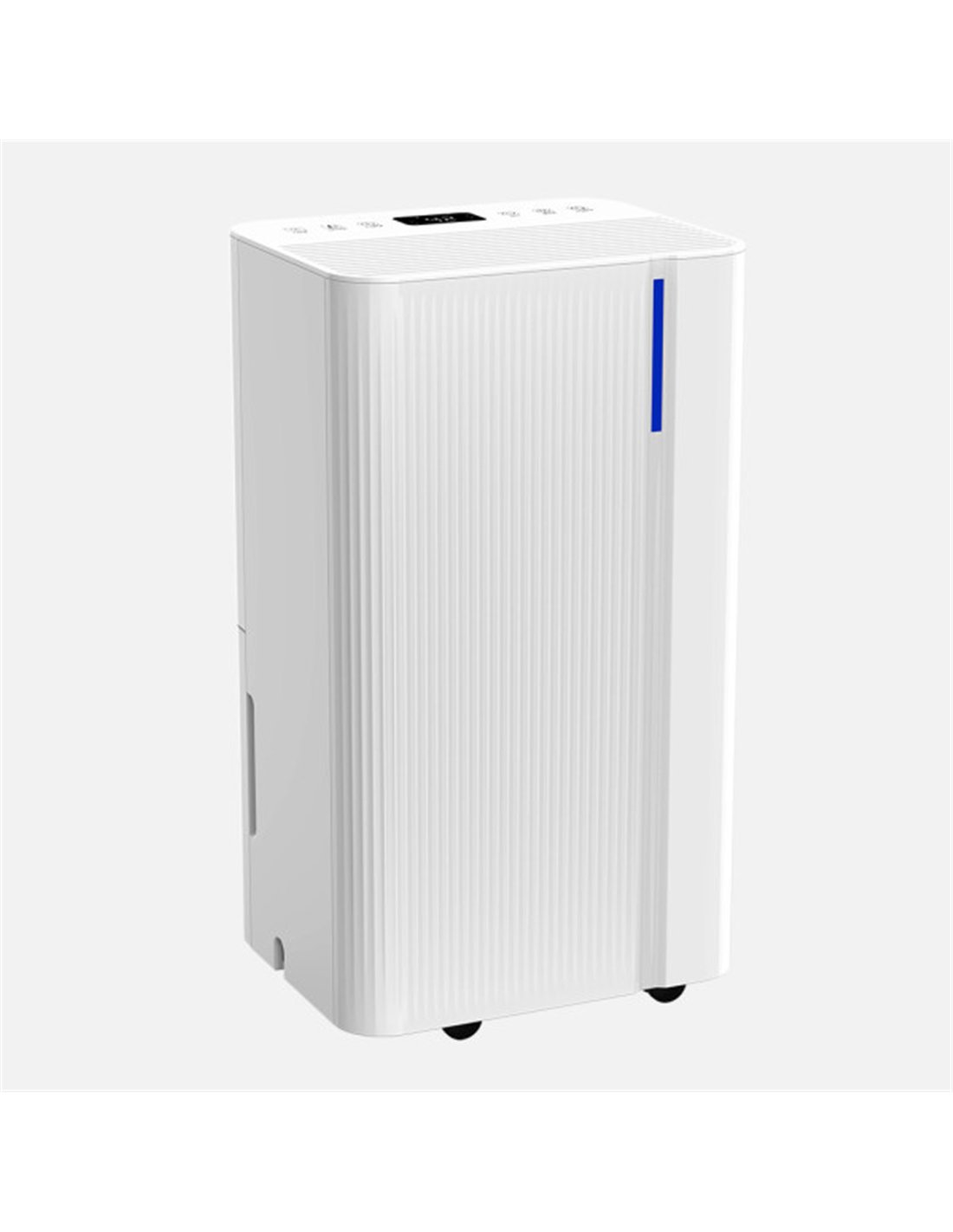 Deshumidificador portátil de la serie CASCADE en color BLANCO. Posee una potencia de 210 vatios para deshumidificar 10 litros/día, eliminando la humedad, el moho y la condensación de agua en estancias y ayudando así a un bienestar máximo, posee FILTRO ANTIPOLVO CARBON ACTIVO devolviendo un aire limpio de partículas y bacterias, y libre de enfermedades. Equipado con un depósito de 2 litros que apaga el deshumidificador automáticamente cuando éste está lleno para no ocasionar desbordamientos y aportando un gran ahorro de energía. Tiene tres modos inteligentes de funcionamiento: NORMAL, SECADO DE ROPA Y SUEÑO, que disminuye el sonido y hasta elimina el pitido de aviso para no molestar en horas de descanso. Deshumidifica con gas R290 de una manera segura y ayudando a proteger el medio ambiente. Acelera el secado natural de la ropa en interiores en su modo SECADO DE ROPA recogiendo toda la humedad y ahorrando tiempo y energía sustituyendo a la secadora. Viene con INDICADOR en forma de luz de la humedad que existe en el ambiente: rojo, verde y azul, con TEMPORIZADOR para programar su funcionamiento de 1 a 24 horas, Panel de control TÁCTIL y pantalla digital. Con SIST.ANTICONGELACIÓN, tiene también un filtro de aire que evita la entrada de partículas de gran tamaño y lo hace un electrodoméstico seguro para los niños. Presenta unas dimensiones de 45,5x24,7x19,8 centímetros. Con cuatro ruedas que hacen fácil su desplazamiento de una habitación a otra.